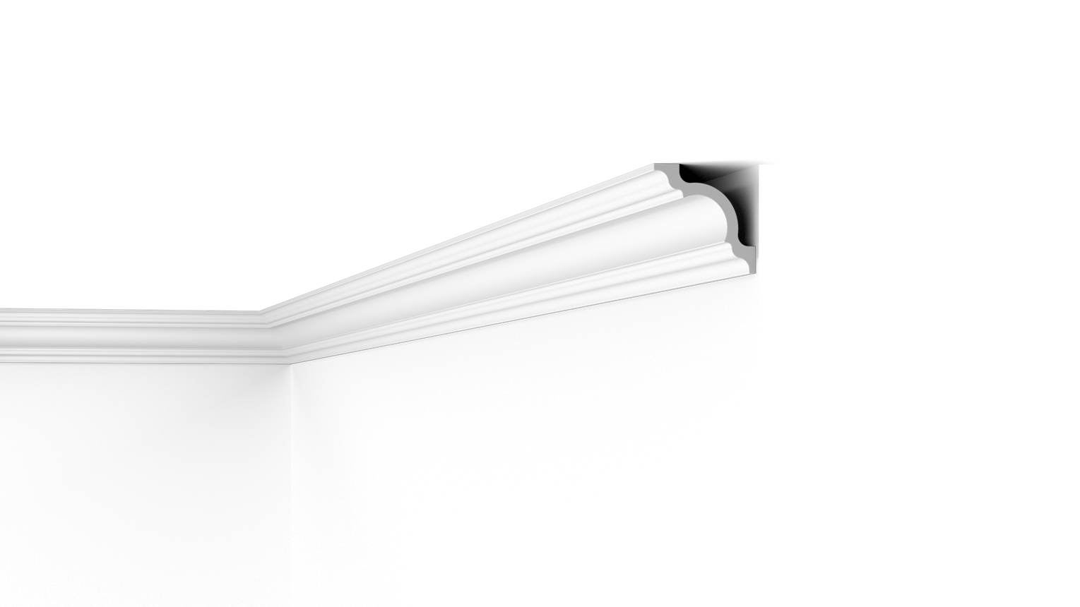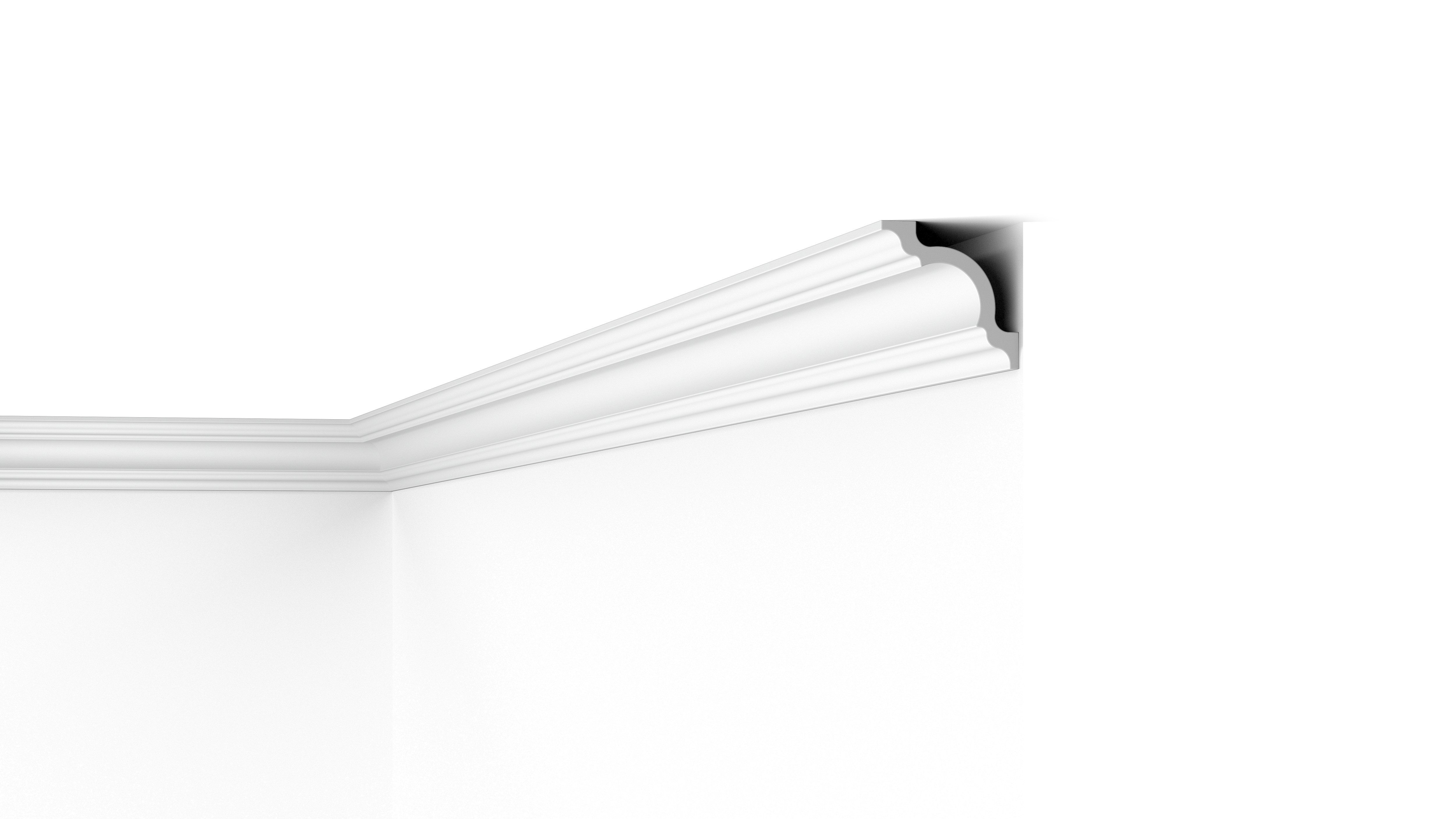 A small space behind the A1 moulding can be used to conceal wiring, cracks and imperfect transitions. Due to the moisture-resistant polystyrene material, the A1 is ideal for humid environments.