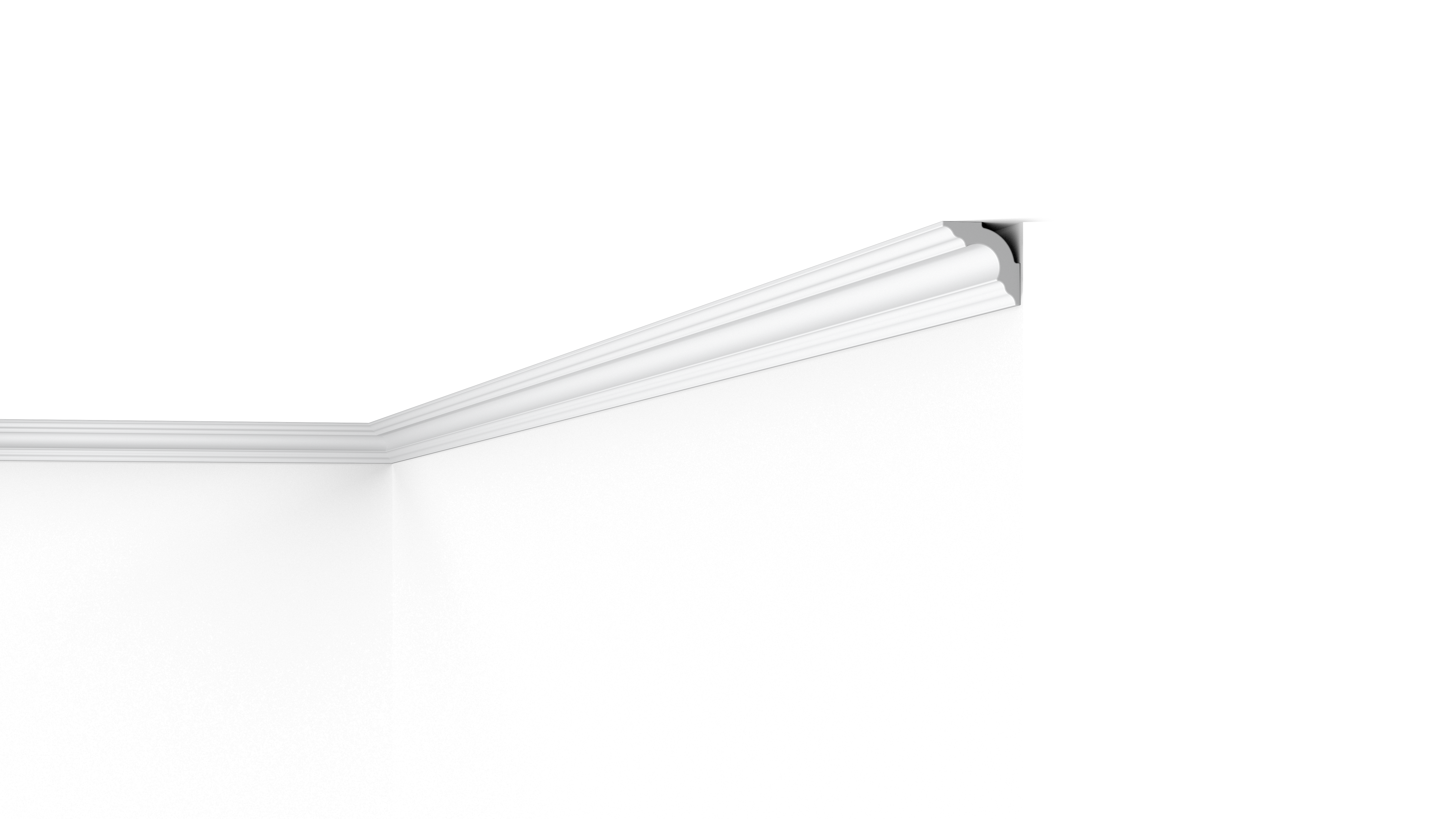 Installation is simple due to the lightweight polystyrene material. The A3 cornice is fixed to the wall and ceiling with ADEFIX® glue. Behind the coving is a tiny gap which can be used to conceal small wires and imperfect transitions.