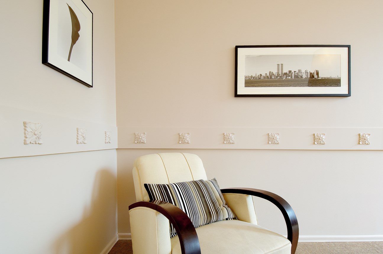 Cornices, picture rails, baseboards, and wall decorations to combine with direct or indirect lighting for a cozy atmosphere.