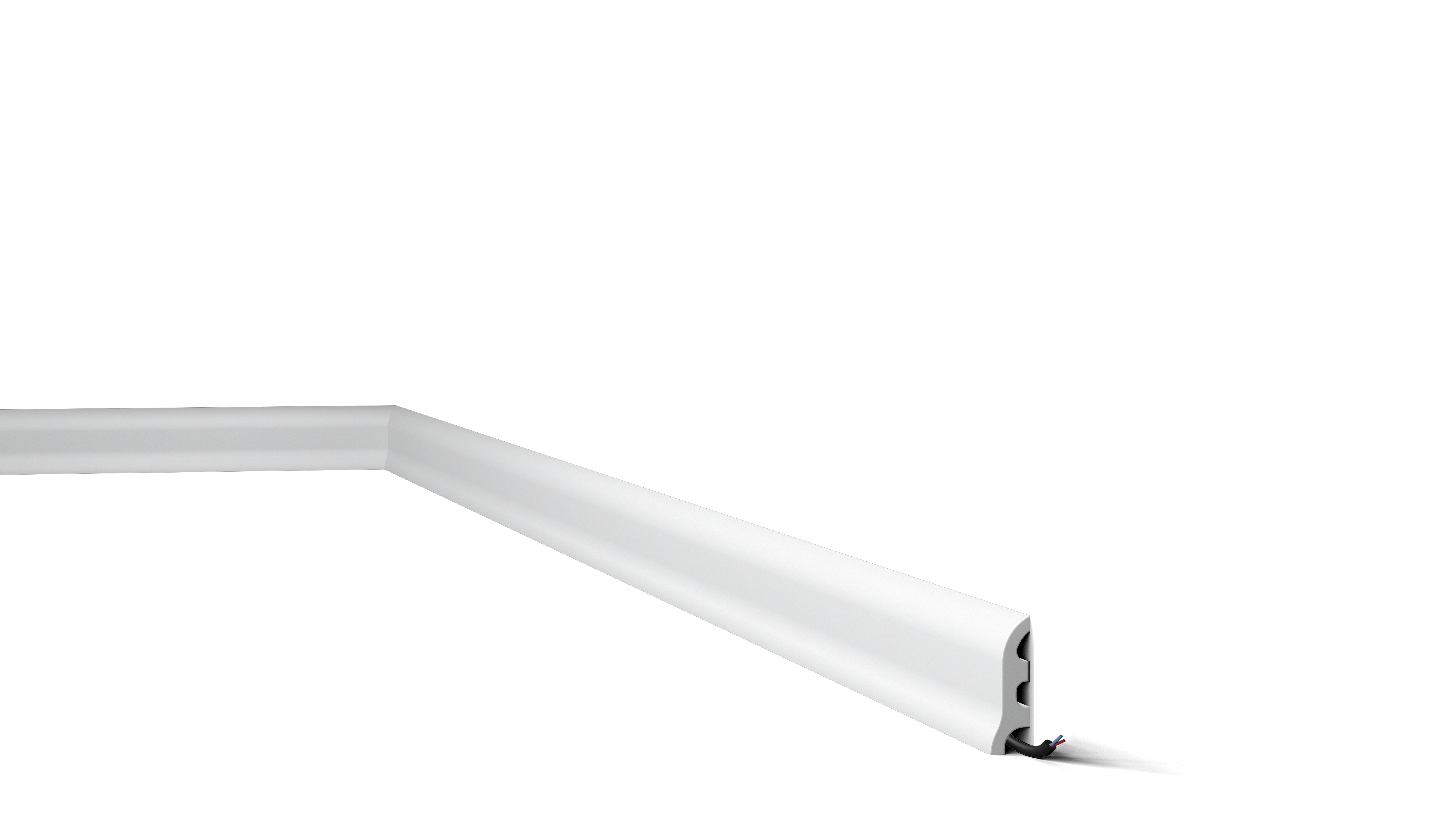 A simplistic and smooth design provides a sophisticated transition between wall and ceiling. The FL3 fits any type of floor, interior style and type of room.Designed in a timeless style, the FL3 skirting is suitable for homes, restaurants and shops. The moisture-resistant material ensures the FL3 is ideal for humid environments.