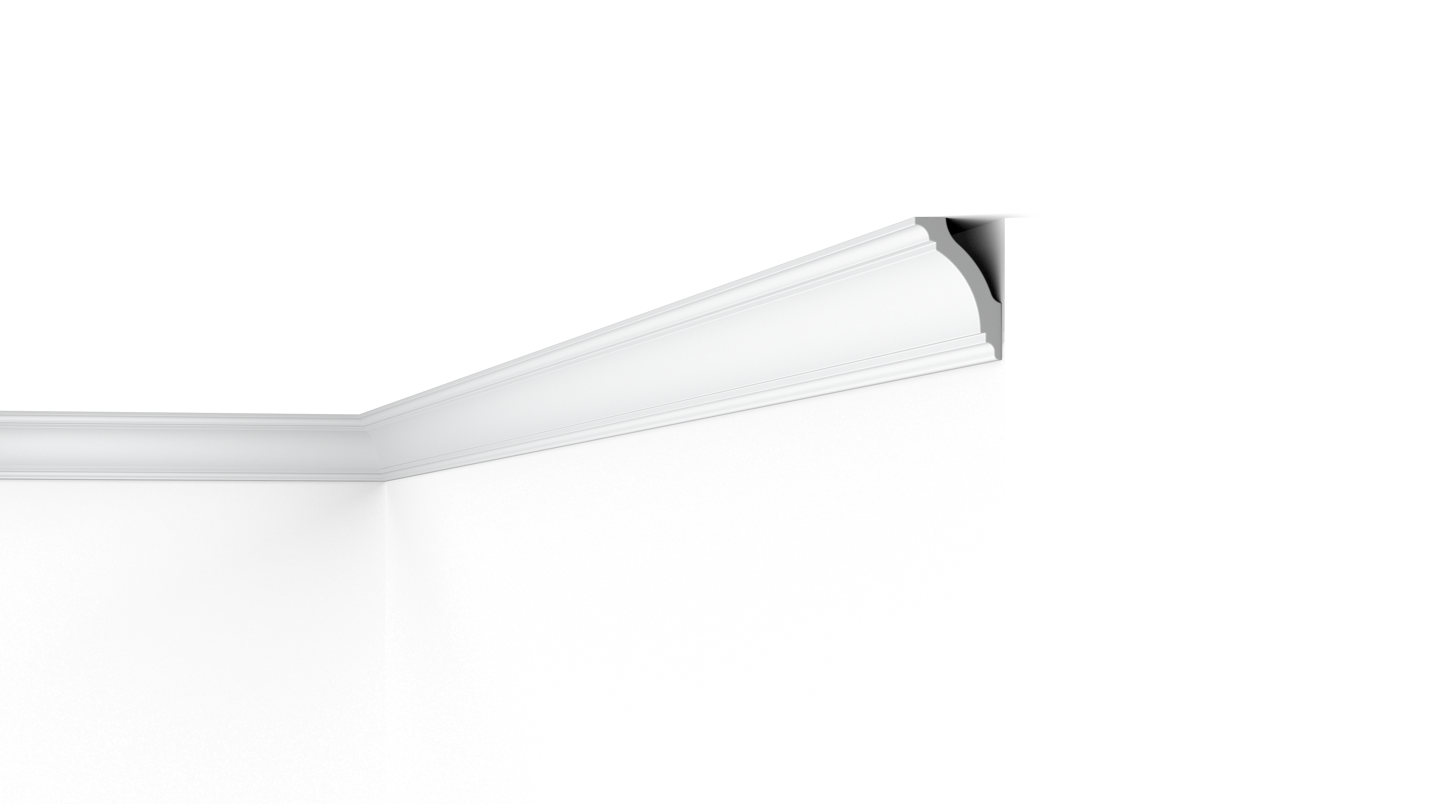 At the back of the GK cornice is a small gap, ideal for concealing wiring and unsightly cracks or transitions. Installing the GK coving is a simple matter of glueing the mouldings to the wall and ceiling. This process is fast and efficient due to the lightweight material.