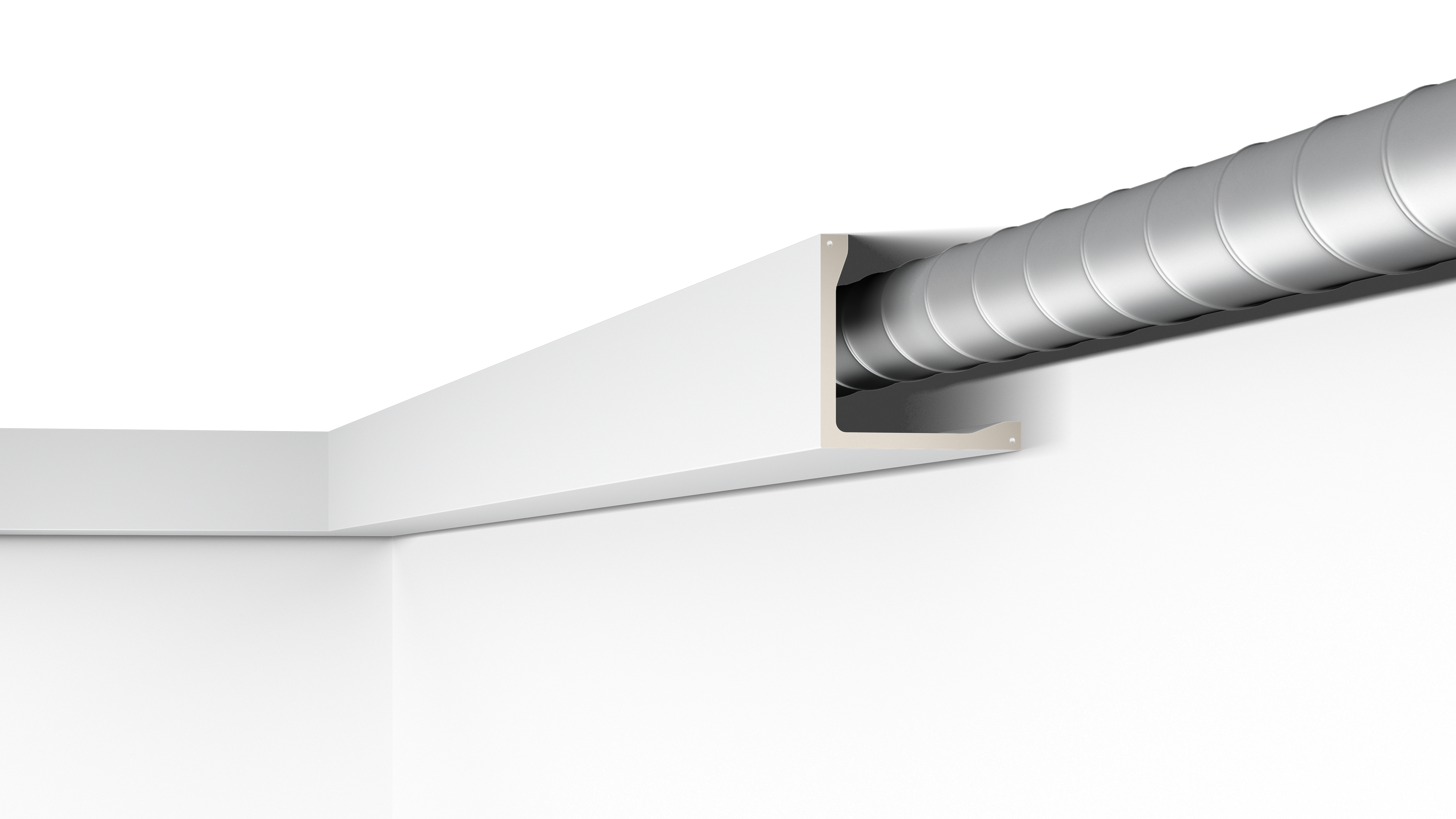Installing the lightweight moulding simply requires glueing each section in place. The L5 ARSTYL® arrives primed and ready for painting in the final colour. There is space behind the L5 to conceal wiring or imperfect transitions.