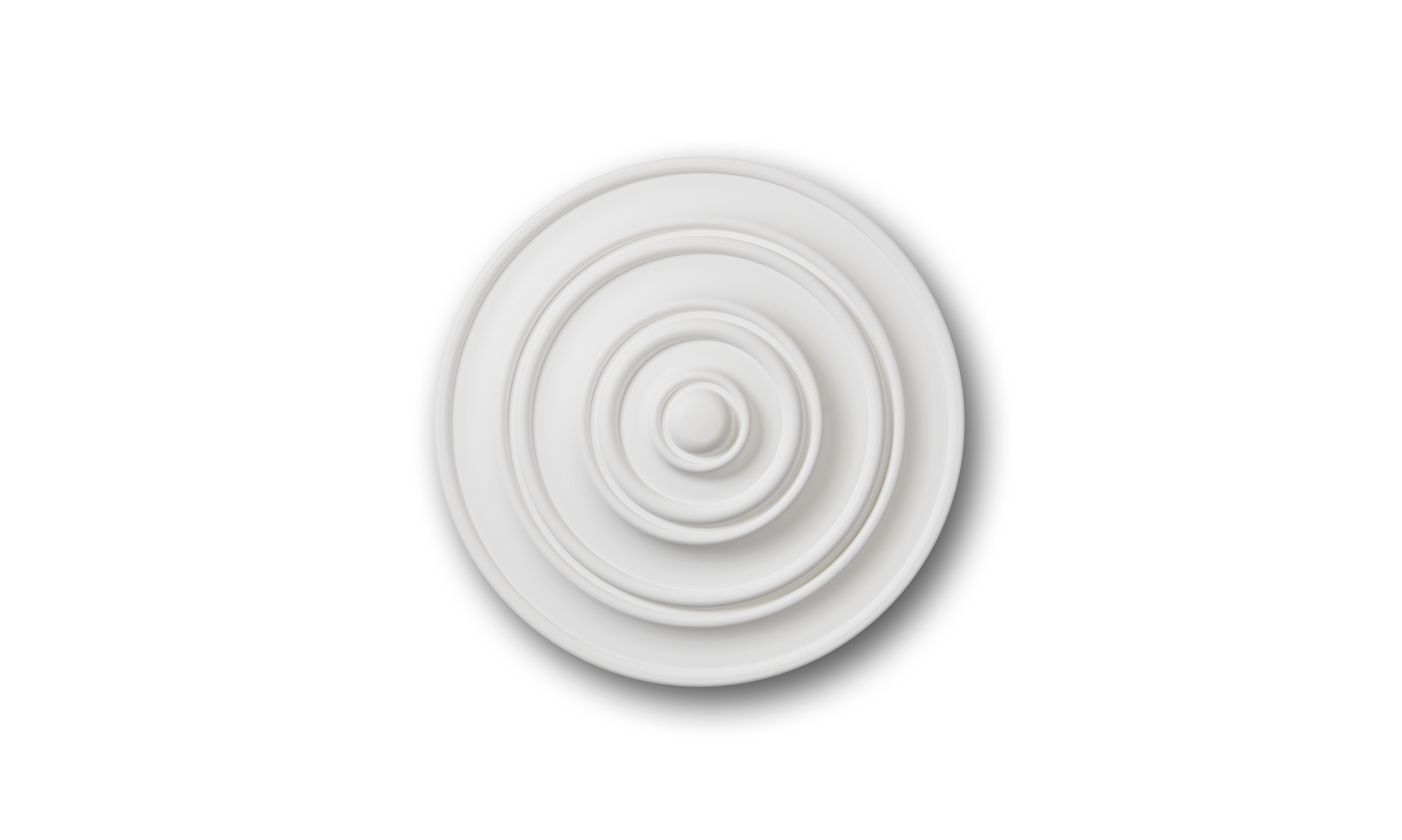 The R14 ARSTYL® ceiling rose arrives primed and ready for painting in its final colour. Fix the lightweight R14 to a surface by glueing in place.