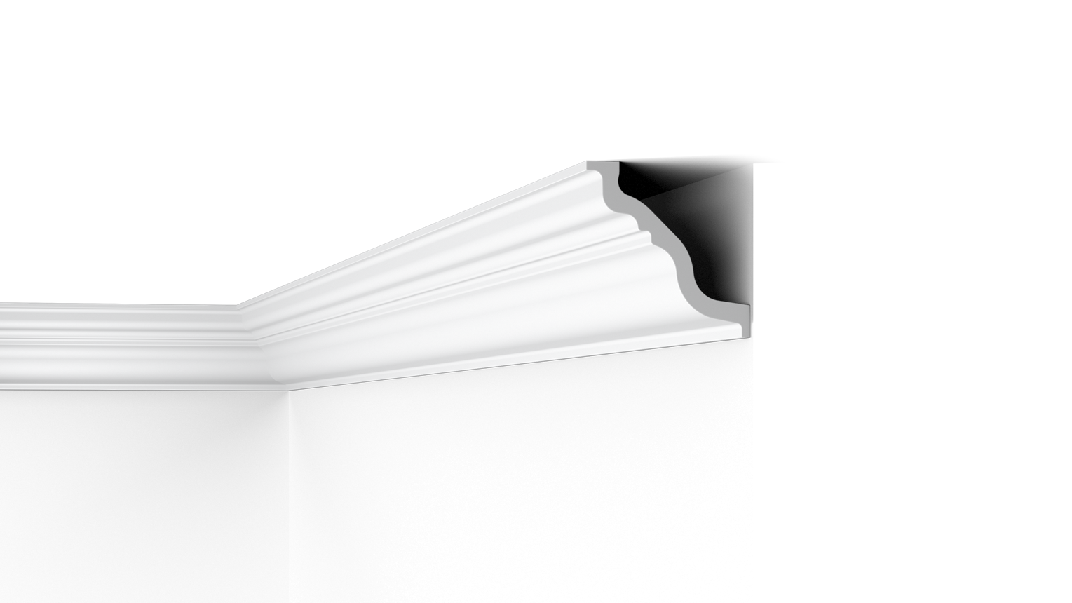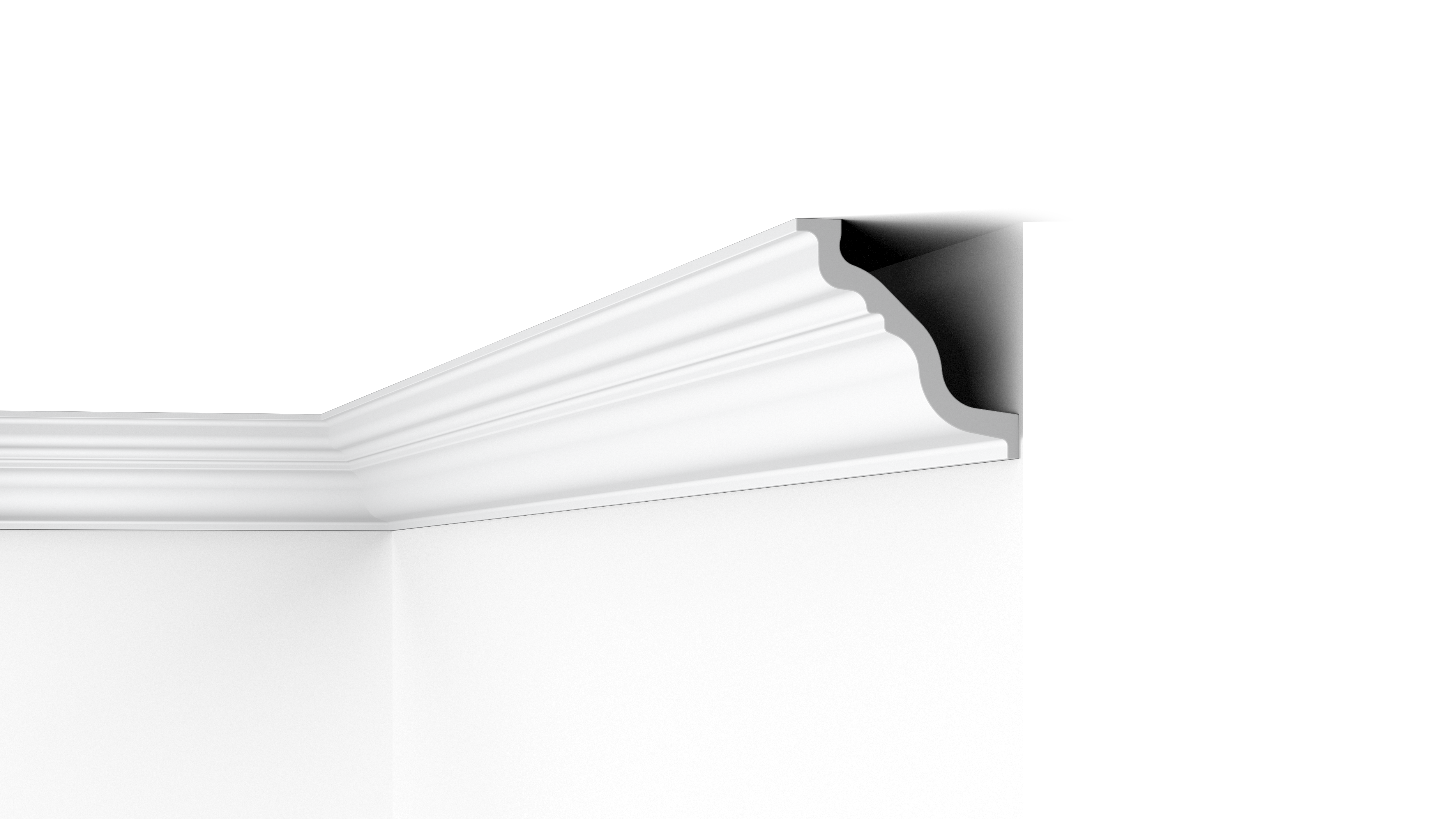 Behind the TL coving is a big gap, ideal for hiding wires, cracks and imperfect transitions. The TL is made of moisture-resistant polystyrene so can be used in humid environments. The TL coving is also fully recyclable.