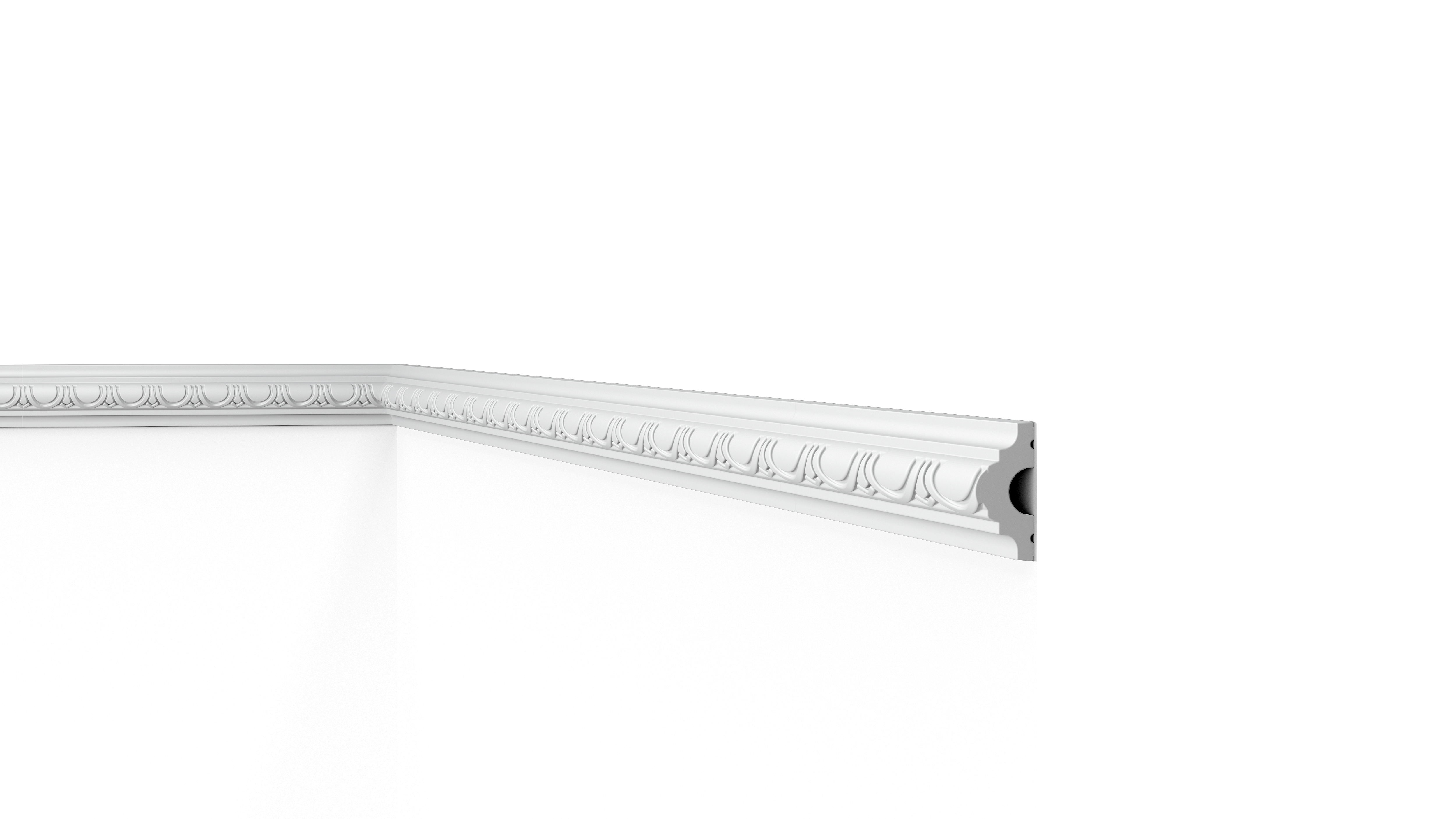 The WO1 WALLSTYL® chair rail arrives smoothly primed and ready for painting in the chosen final colour. High density polystyrene is lightweight which facilitates simple installation on the wall or ceiling.