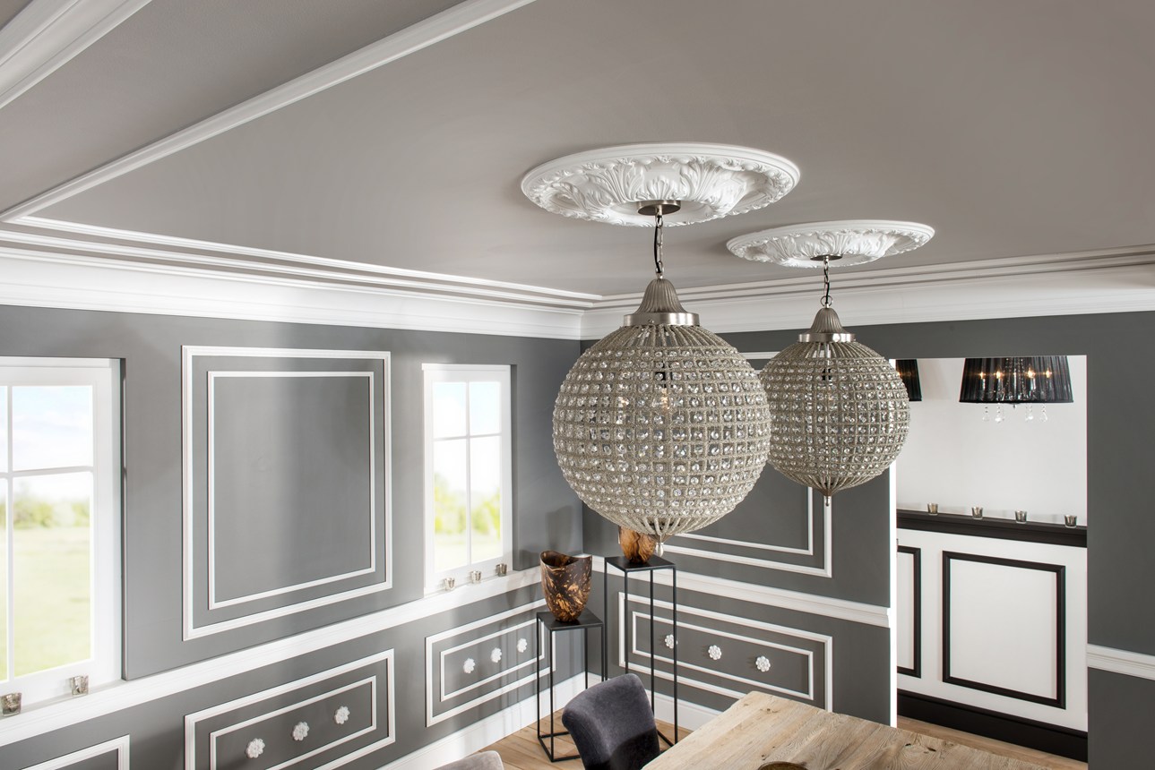 Cornices as decorative elements between the ceiling and the wall. Rosettes that transform the style of your interior.