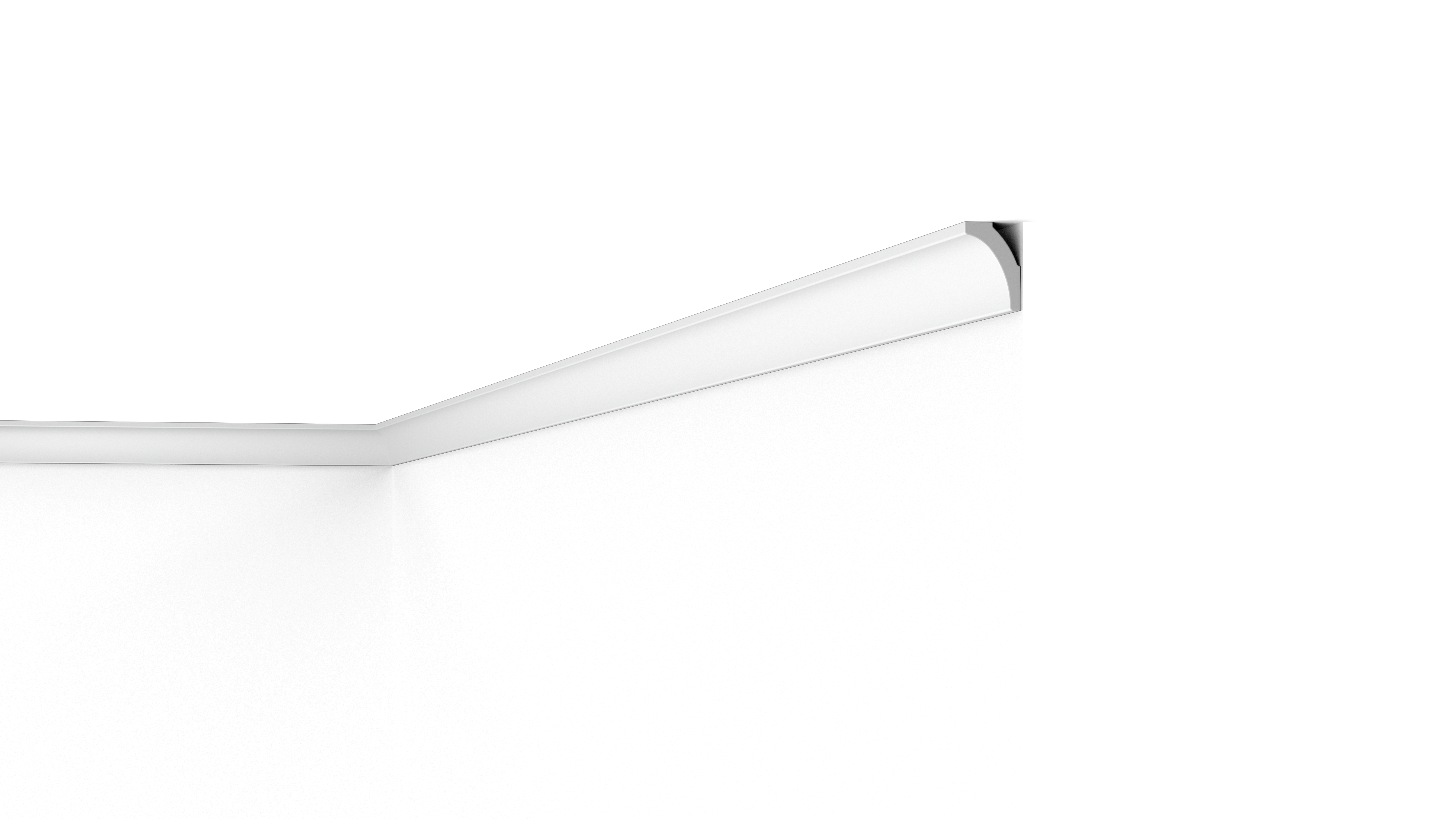 The minimalistic WT8 cornice lends itself to all interiors thanks to its simplistic, rounded design. This smaller coving provides a visual break between the wall and ceiling without appearing to reduce the room height. The WT8 WALLSTYL® Cornice is timeless, and a versatile option for regularly changing interiors. Furthermore, it is also possible to use the WT8 as a small skirting solution.
