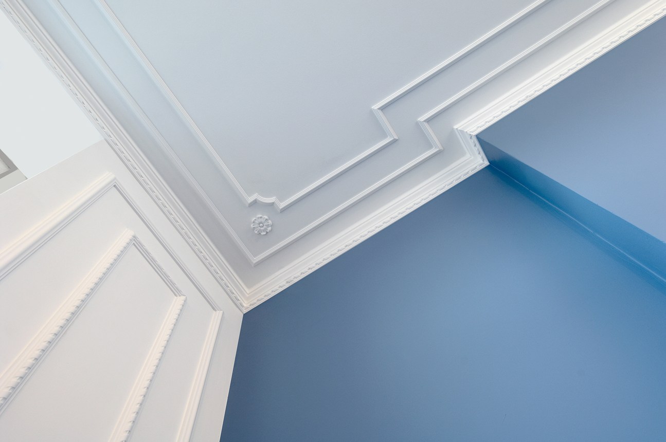 Cornices as decorative elements between the ceiling and the wall. Rosettes that transform the style of your interior.